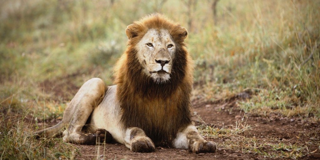 Walking through wet grass left one of Thanda Safari’s male Lion’s mane looking much darker than it really is.