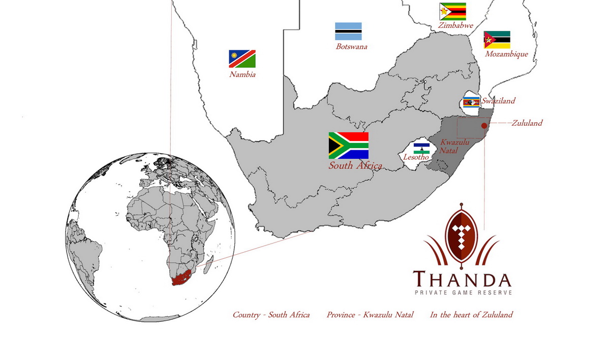 S27°47’48” E32°08’17” [-27.796864, 32.138281] = N2/P450 intersection – turn west onto P450 and drive for 3.6km to the Thanda gate (on your left).