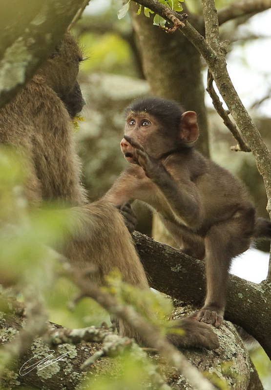 Baboons have a lot of arguments. Especially the young ones are constantly busy with playful fighting.