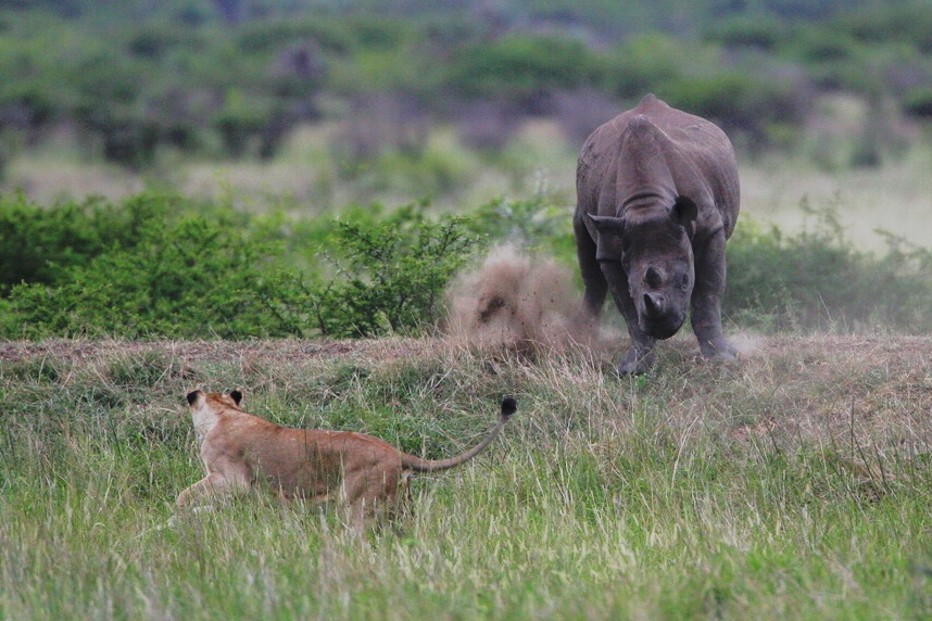 A picture from my archives: What an exciting sighting when a Black Rhino met a Lioness.