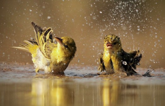 It was a hot first day of the year so I thought this picture of two Yellow-fronted Canaries – having a refreshing bath – would be appropriate for the first post in 2020. These small birds are also knows as Green Singing Finches.