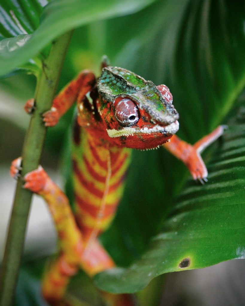 Very colorful, very slow moving and very fast catching prey = Panther Chameleon, my favorite reptile 😊. This is especially for all my friends in Switzerland. The picture was taken at Masoala Hall at the Zurich Zoo.