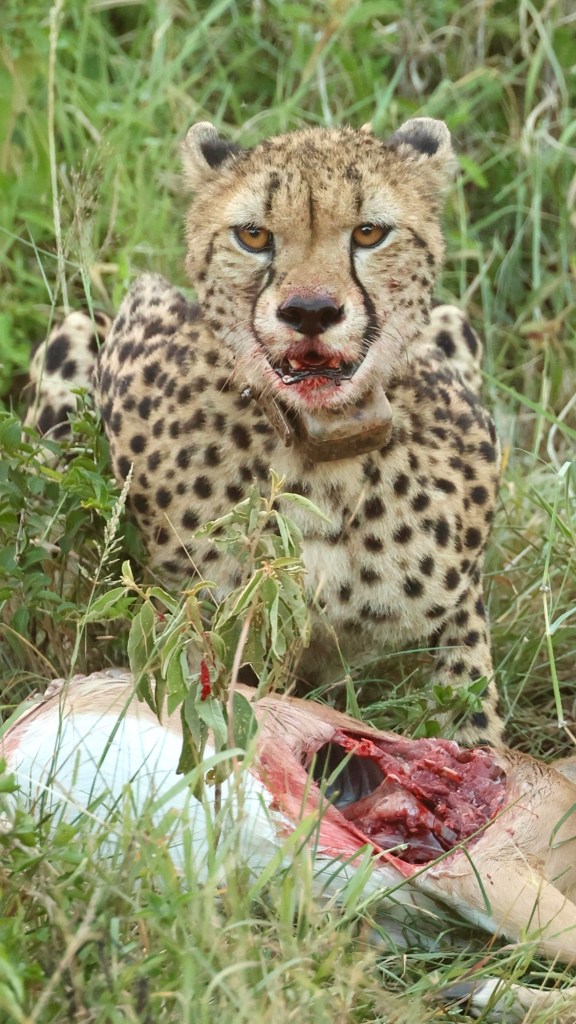 Cheetahs often loose their kill to one of the larger predators (Lion, Hyena, Leopard, …) before they are able to start eating.