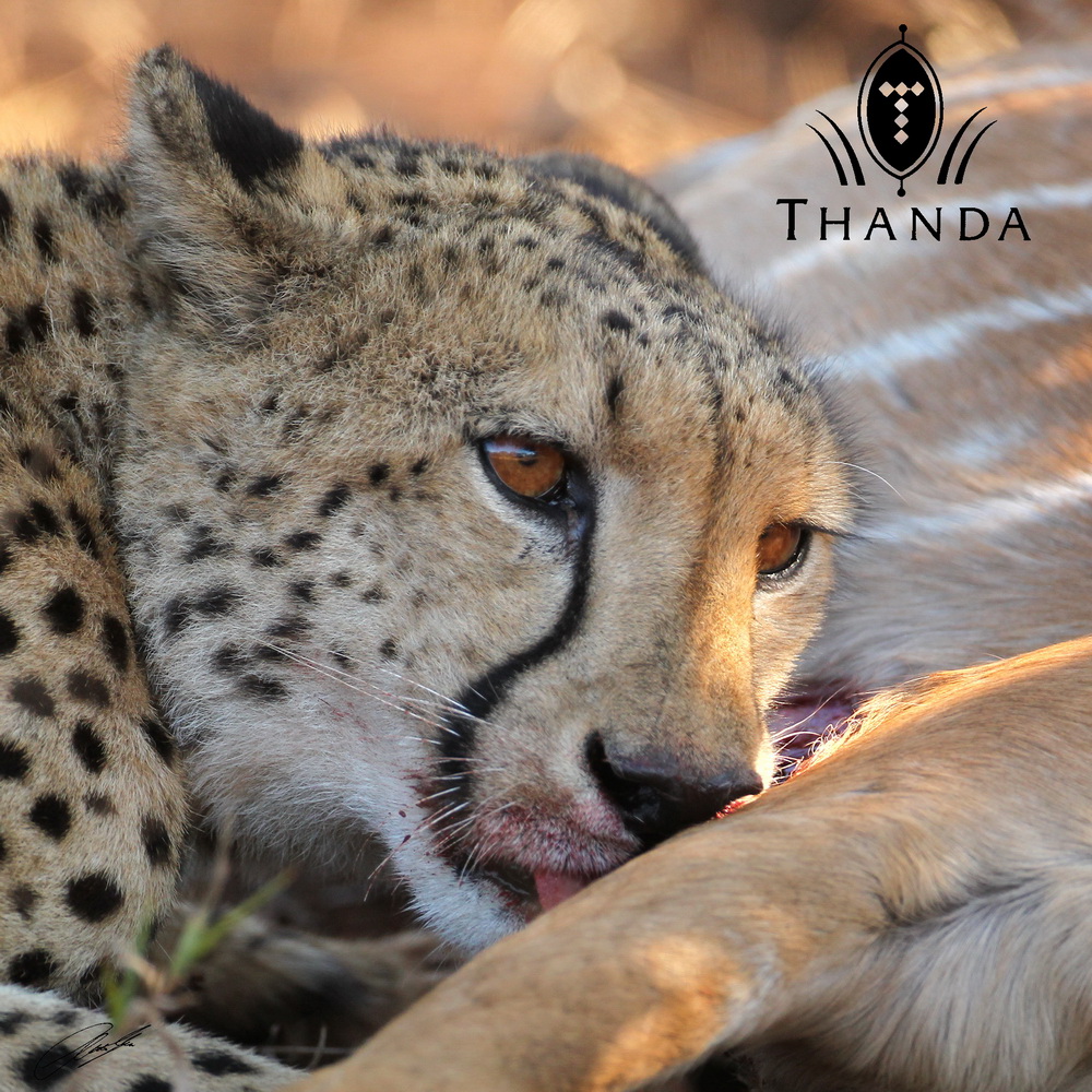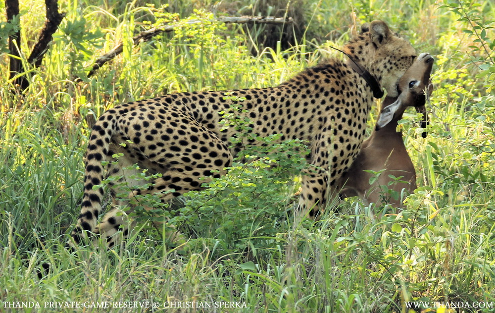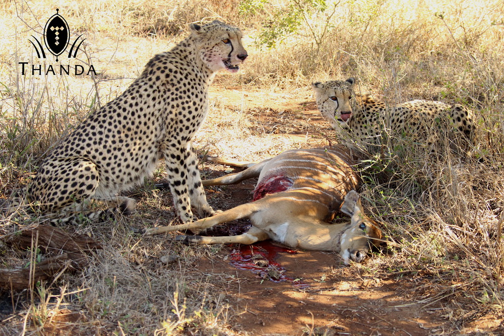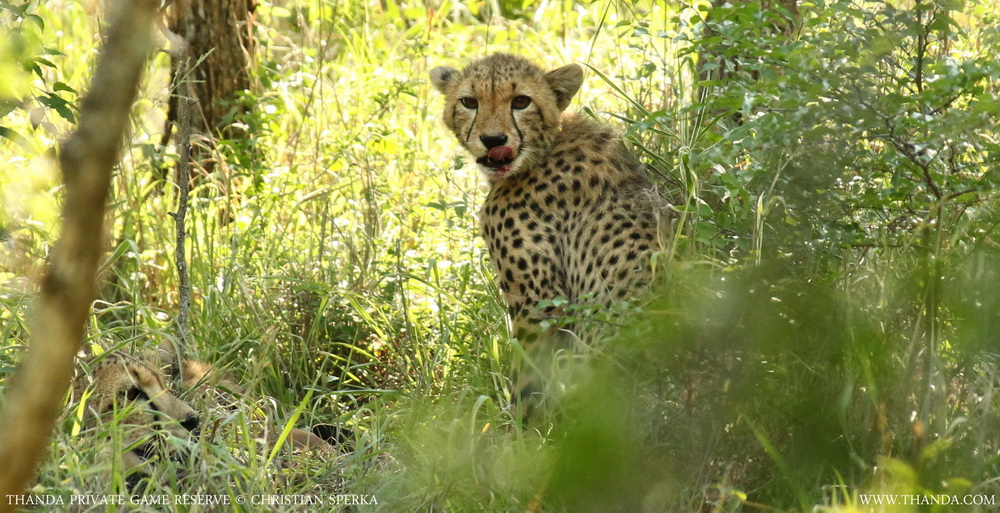 We had not seen the Thanda Cheetah female and her cubs for quite a while. So it was exciting moment for the Thanda guests, the tracker and the guide when the Thanda Wildlife Management announced over the radio that the three Cheetah had been spotted.