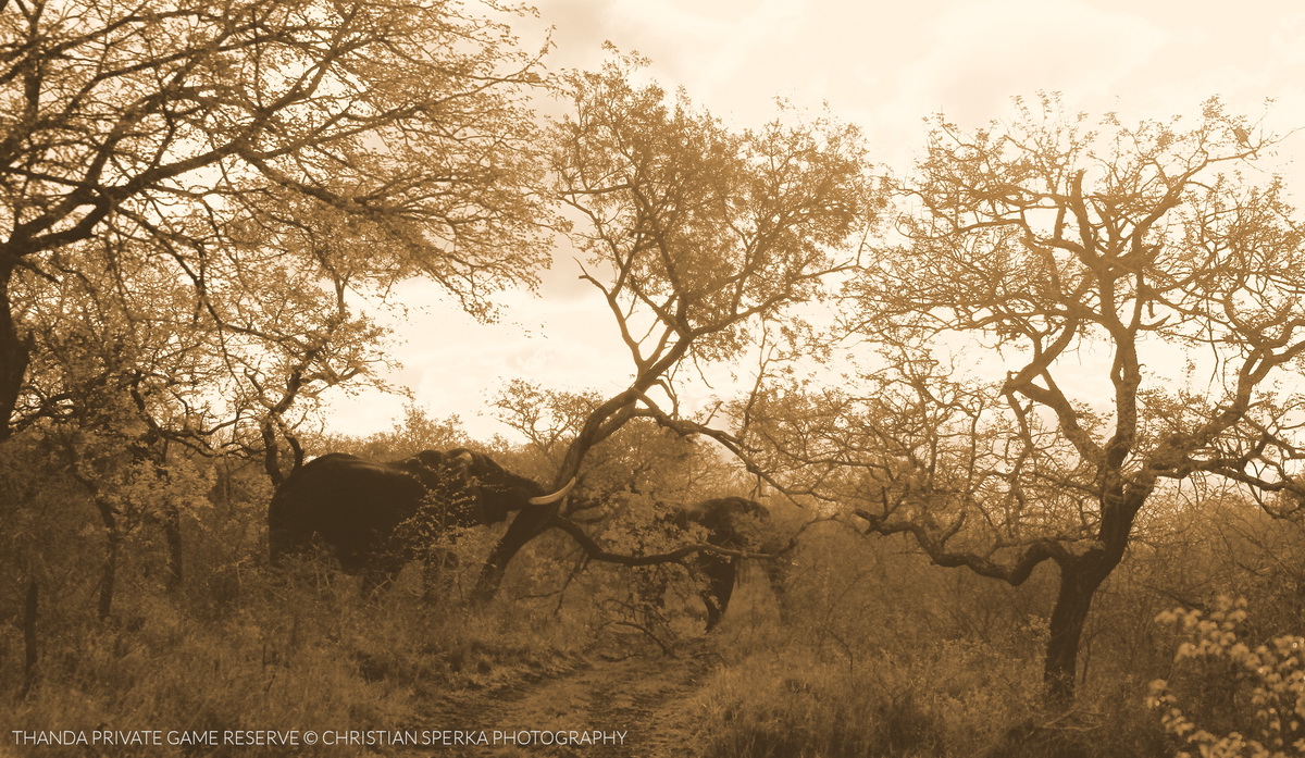 As it happens during this time of the year strong winds frequently follow heavy rains. On our afternoon game drive we first encountered a beautiful rainbow over the Lebombo mountains, then we met with Thanda’s breeding herd of Elephants.