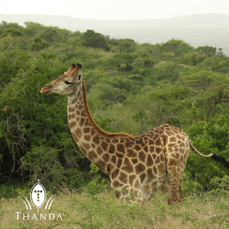 This afternoon we had some winter rain. Despite the unusual wet weather for this season the Thanda guests enjoyed great game drives with Elephant bulls, a herd of Buffalo and this young Giraffe (in Zebra company).