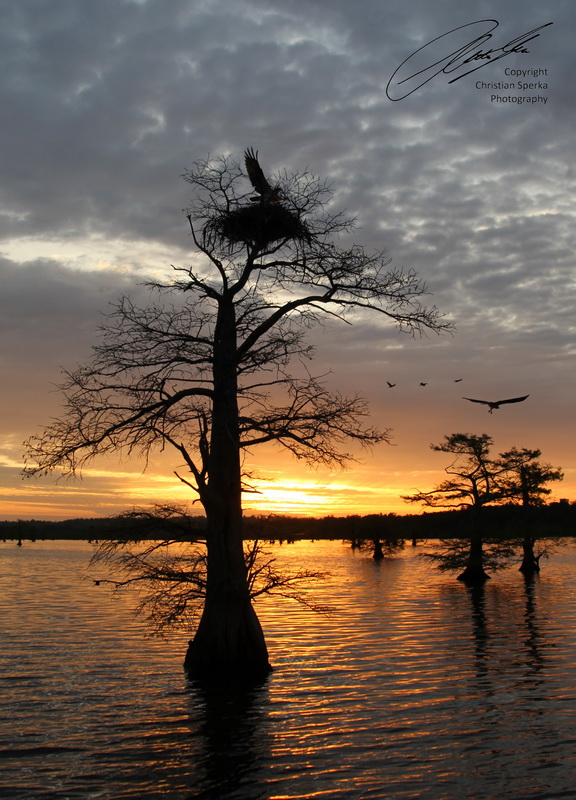 Into the Sun – Osprey and Geese at Sunrise on Reelfoot Lake