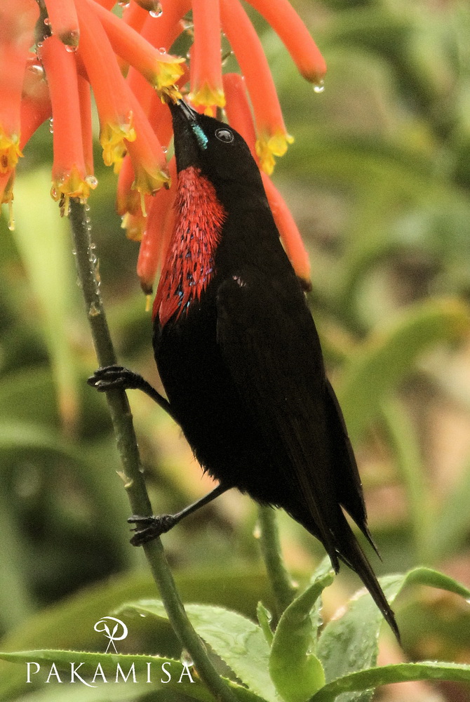 Picture above: Scarlet-chested Sunbird feeding in the Pakamisa lodge garden.