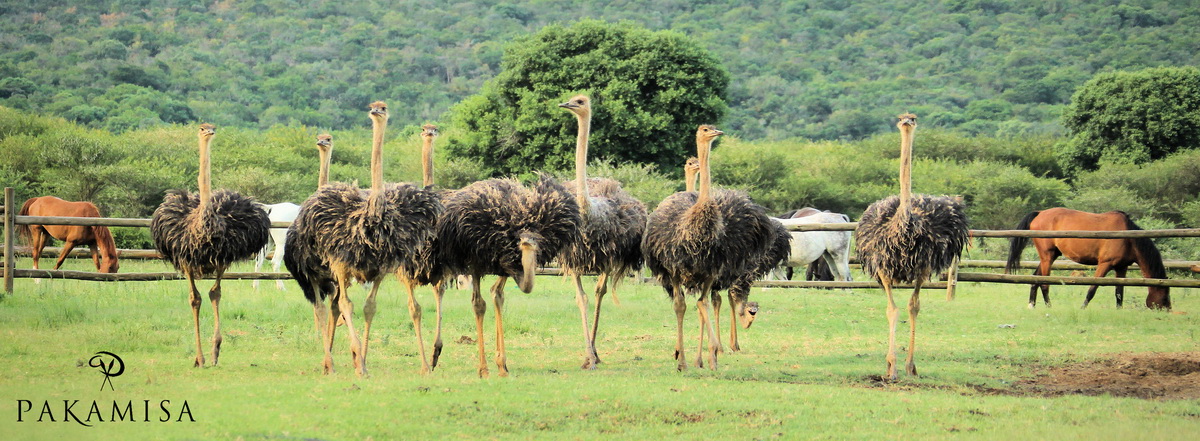 Well, you can attribute the title of this blog either to me, Badger (the horse I am riding), the Giraffe lady (with her admirer) or the fast growing Ostriches on Pakamisa :-). Have a look at all the images!