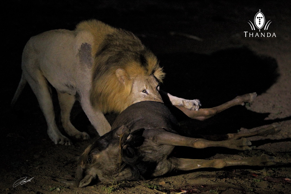 Shortly afterwards the Lioness was chased off the kill by Thanda’s dominant male Lion who took over the feast.