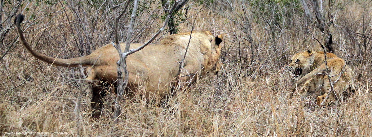 The little Lioness was very scared when the young male chased her away from ‘his’ kill …