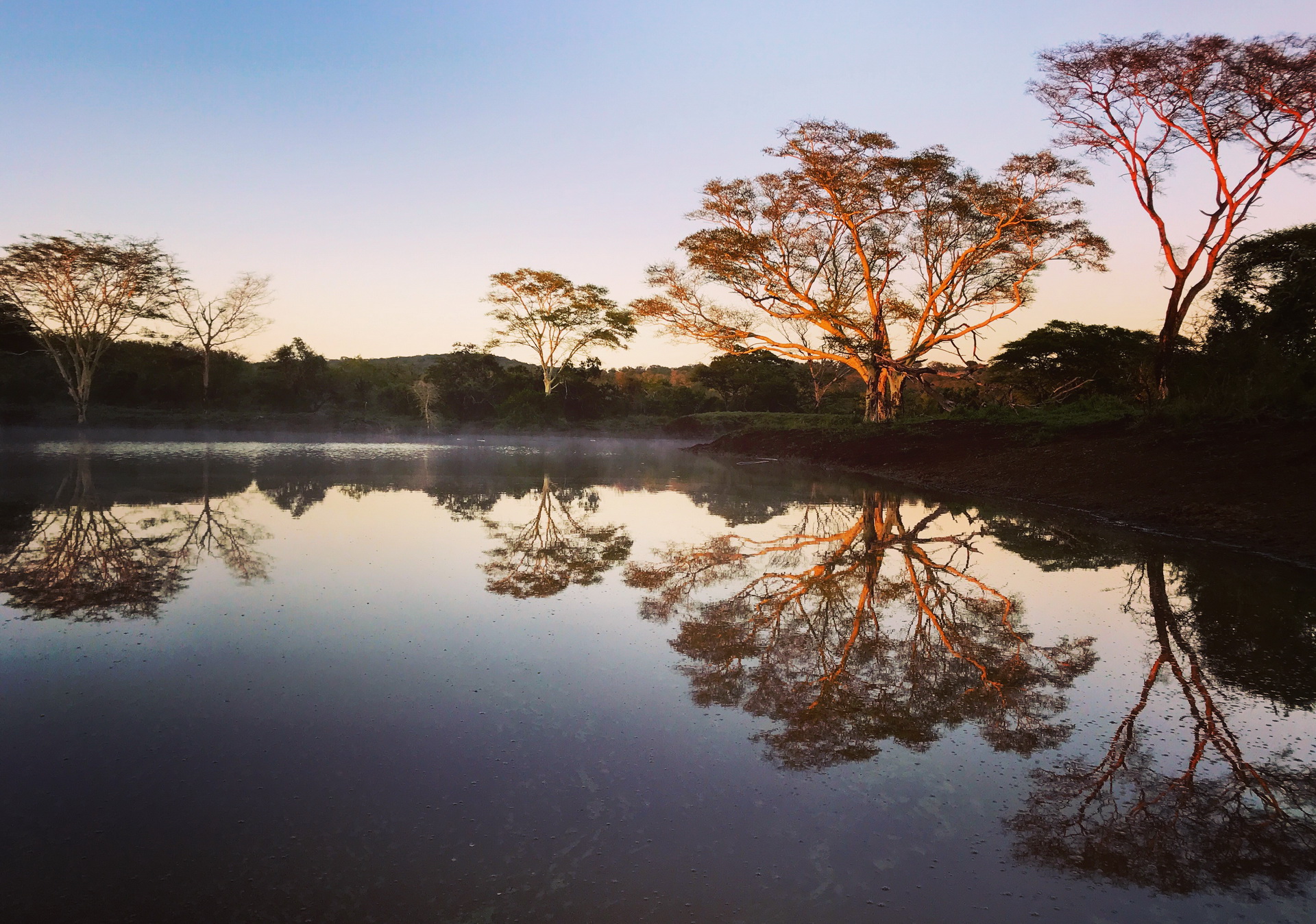 Thanda House dam with morning mist …