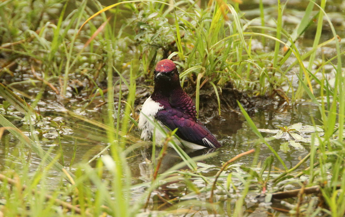 Strong colors – Violet-backed Starling bathing ….