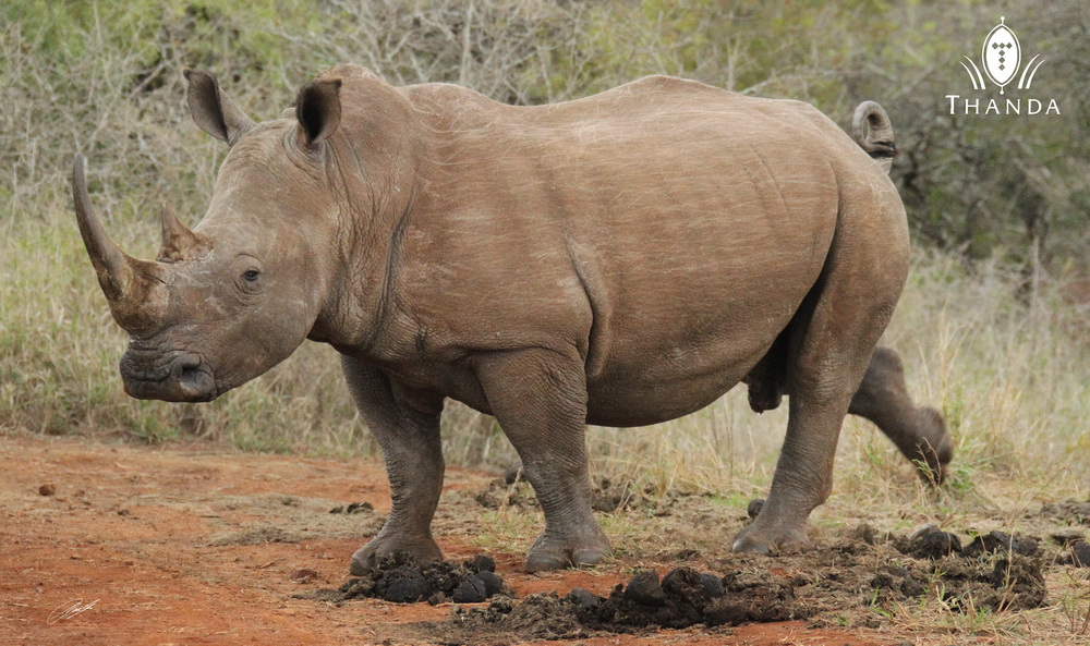 If you think that this White Rhino bull is just scraping his dung around you are mistaken. He is actually adding important information to this Rhino Communication Center, called a Midden. The same location is used by many Rhinos to place their dung and with it to place information.