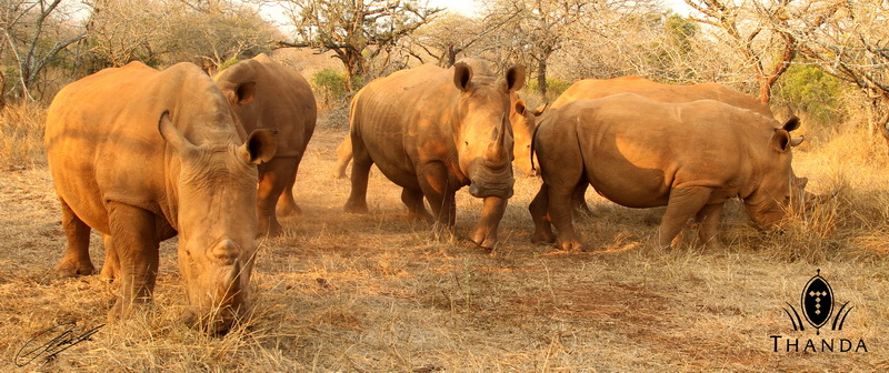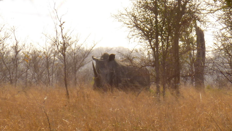 But this morning we got rewarded for our hard work and patience. When we left the lodge we spotted a Leopard just as we left (he did not stick around, but we got a good look). Then we met our dominate male Lion on to of a hill. We tracked our Buffalo herd and just as we left them we saw two White Rhinos (mother and daughter) in an open area. Before we headed back to the lodge we went to the area where we saw the breeding herd of Elephants last. We did not find them but we found one of our oldest Elephant bulls. After observing him for a while we turned back to the lodge.