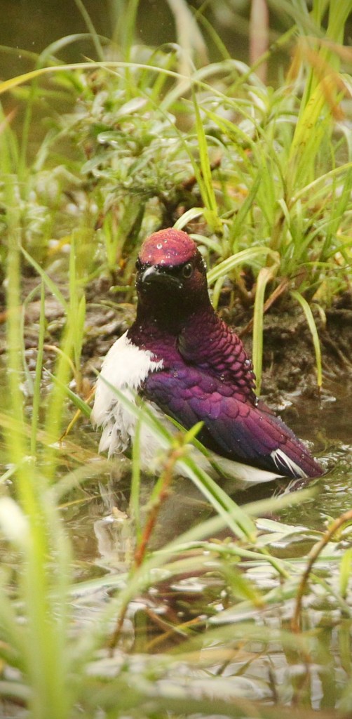 Some colors appear a lot in nature and some colors are rather rare. This is a picture of one of my favorite small birds. It is a Violet-backed Starling. The male features the most magnificent iridecent plumage to attract the ladies.