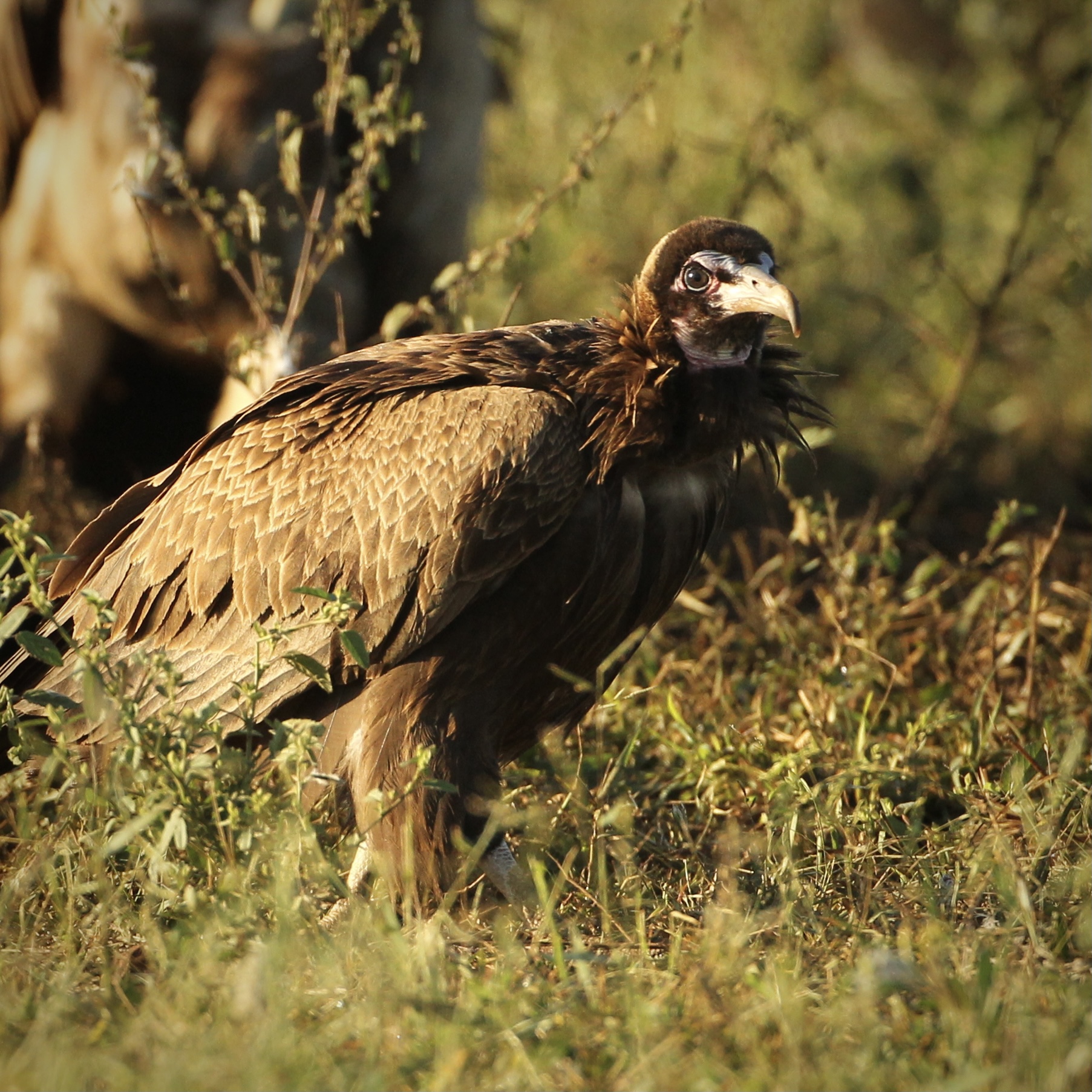 White-backed Vultures and Hooded Vultures fly in once all the four-legged creatures have left. They are often accompanied by large Lappet-faced Vultures (no pictures). Each vulture species‘ beak is designed to support them in their size-dependent role.