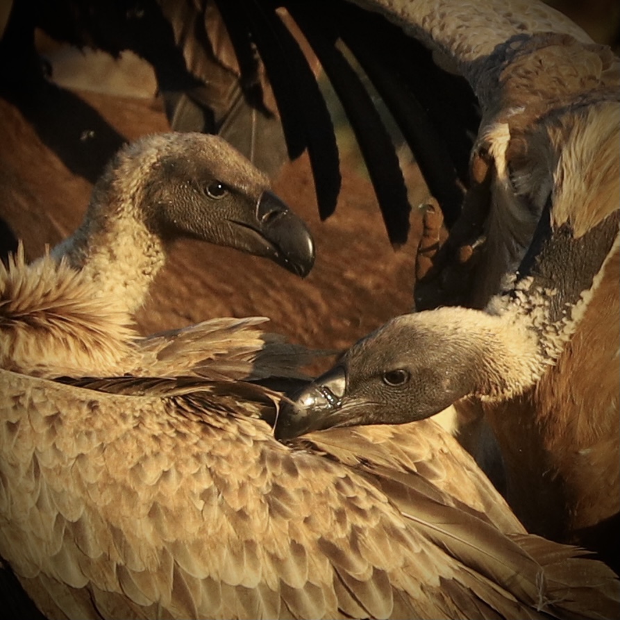 Also know as Cape Vultures these magnificent birds are often mistaken for White-backed Vultures which look very similar. The Cape Vultures have orange/yellow eyes and are larger than White-backed Vultures, who have very dark eyes.