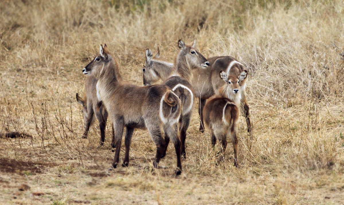 Waterbucks are an antelope species very well adapted to wet, marshy areas. An oily substance prevents them from getting hoof rot, even when standing for a long time on wet ground.