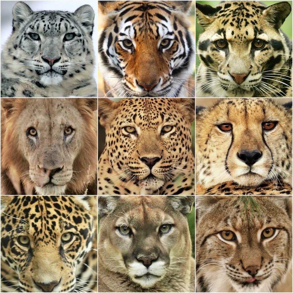 This charts gives an overview over the 39 species of cats (38 in the wild) in the Felidae family and their scientific classification into two subfamilies and 14 genera.