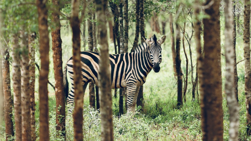 This picture is of a Burchell’s Zebra (Zebra quagga burchelli or Damaraland Zebra or Zululand Zebra), a Southern subspecies of the Plains Zebra, which can be found on Thanda Safari. In difference to all other Zebras they have a few grey shadow stripes between their white and black stripes.